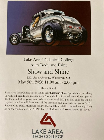 Lake Area Technical College Auto Body and Paint Show and Shine ~ 1201 Arrow Ave, Watertown, SD ~ May 9, 2026