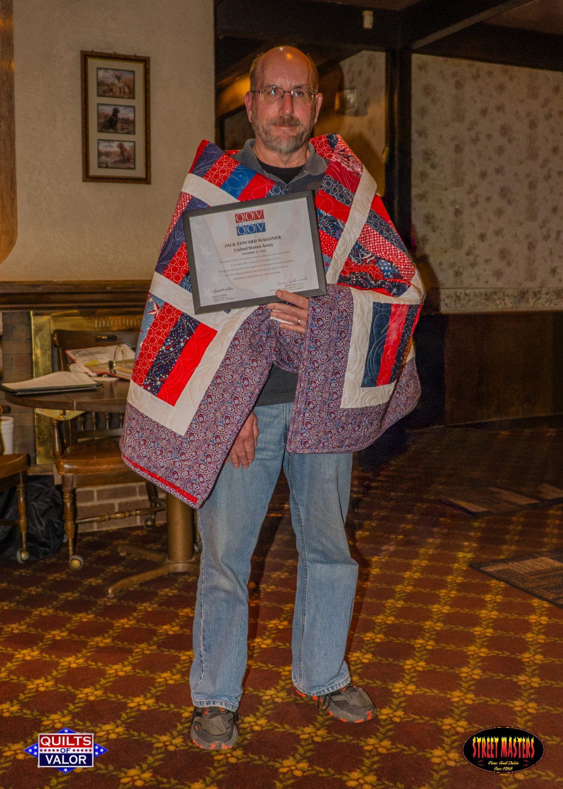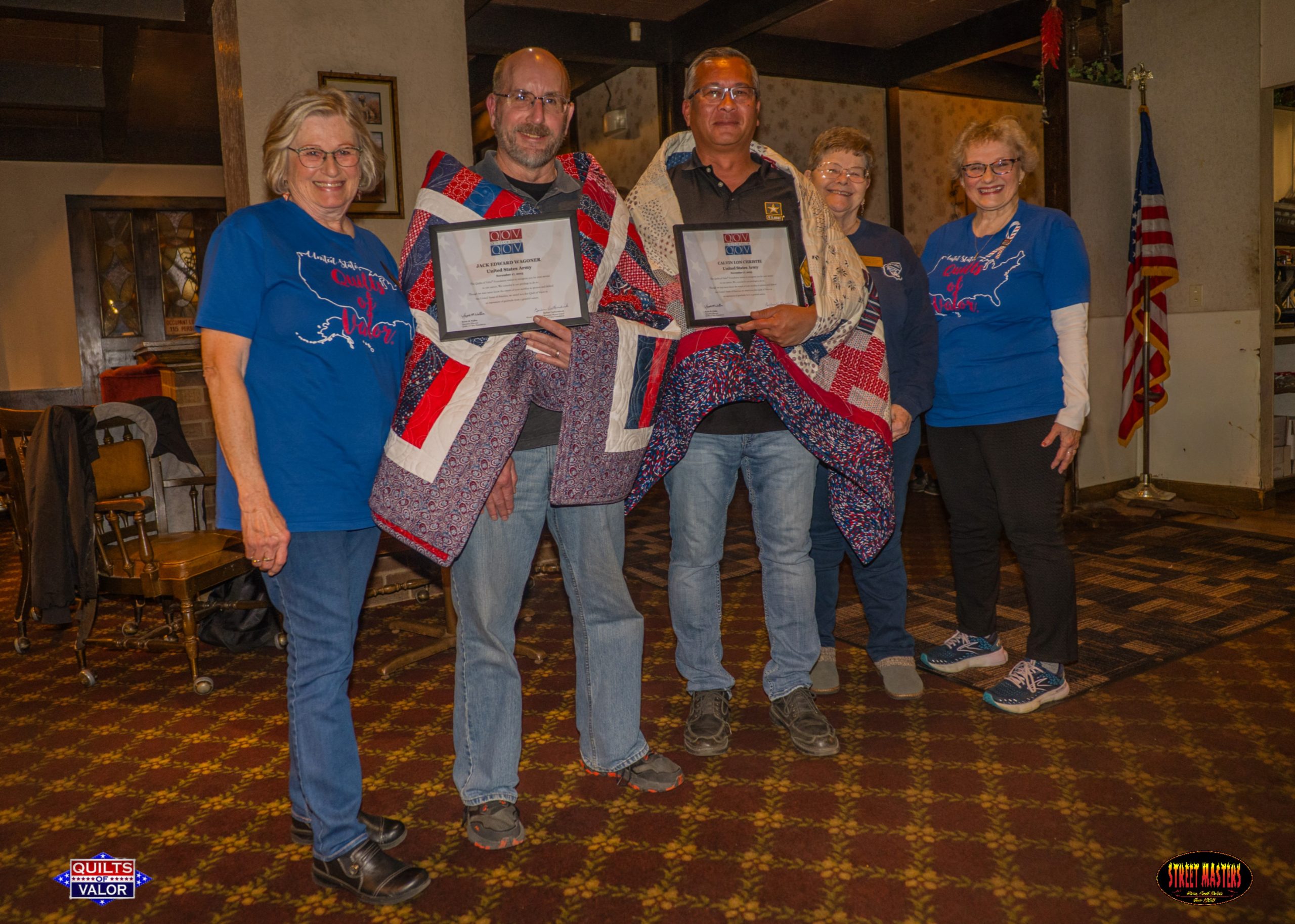 The quilts presented to Jack and Cal mark the 15th and 16th quilts created by Ardys for our Street Masters Veterans
