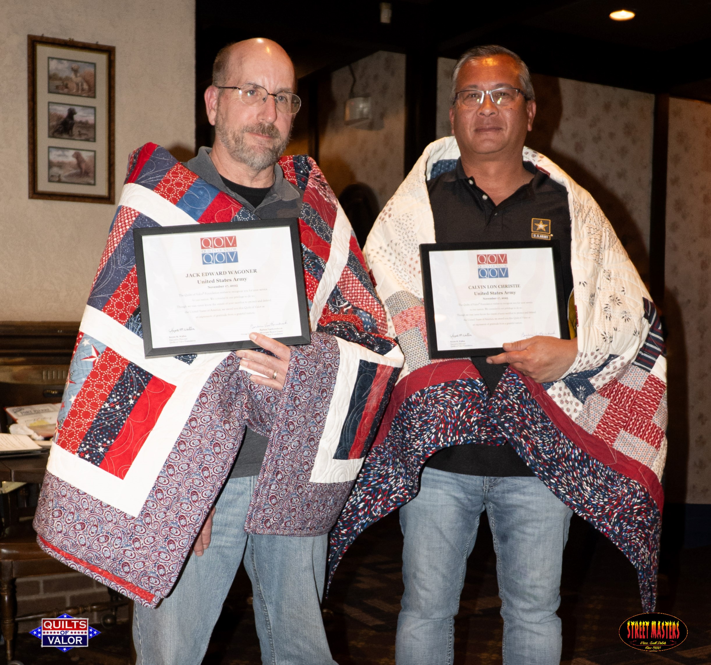 Jack Wagoner and Cal Christie were presented with registered Quilts of Valor.